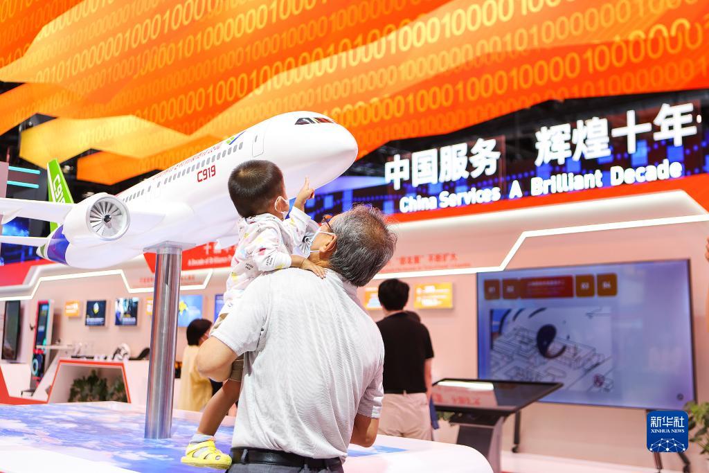 9月5日,观众在服贸会国家会议中心参观中国服务贸易成就展。新华社记者 郝昭 摄