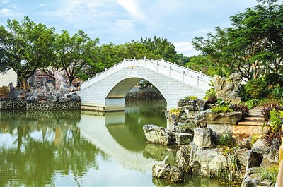 戏台周边的彩趣花园,运用了大量彩色植物,形成五彩斑斓的视觉效果。大榕树亭亭如盖,成为蕨类植物成长的乐园。掩映在连根榕树下的连理树广场,有着“在天愿作比翼鸟,在地愿为连理枝”的美好寓意,新婚夫妇或是情侣在广场上挂红枝,许下美好愿望。榕树下的自然滩涂,生长有大量可食用湿生植物,为鸟类提供了觅食及栖息的场所。