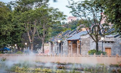 大量传统岭南建筑的细节元素如青砖、瓦片、岭南山墙等被精心保存,灰塑、彩绘、满洲窗、蚝壳墙等被完整保留。一些原有风貌特征不明显、保护等级较低、存在安全隐患的建筑结构被加固,后期加建的破坏原有风貌的部分被清拆。新建的仿古建筑在保证传统岭南建筑的风格下,局部使用玻璃、铝板等现代建筑材料,既有古建筑特色,又有现代建筑的通透。对每一棵生长了几十年的大榕树都进行了实地测量,并通过控规调整对其进行保留。