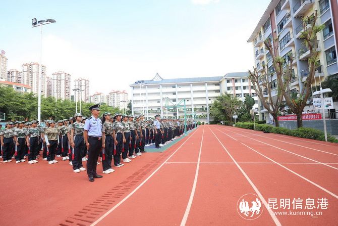原来,景洪市民族中学新学期为使入学新生尽快适应学校生活,邀请西双版纳出入境边防检查站为648名新生开展为期五天的新生学前教育。该站选派了5名富有经验、责任心强、军事素质过硬的民警担任教官,在认真总结往年军训工作经验基础上,制定专门训练方案,科学搭配训练科目,充实训练内容,丰富训练形式,为学生们开展了队列、防护技能、国防教育、军歌学唱和内务整理等方面的训练。