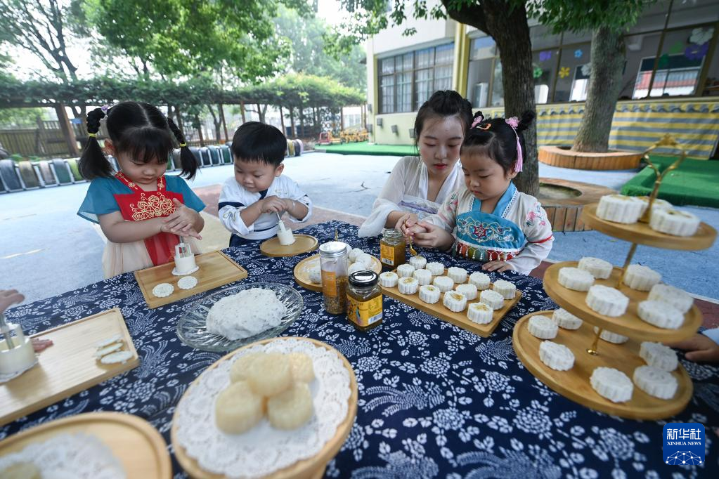 9月8日,长桥中心幼儿园的孩子们在老师的带领下自制桂花月饼。新华社记者徐昱/摄