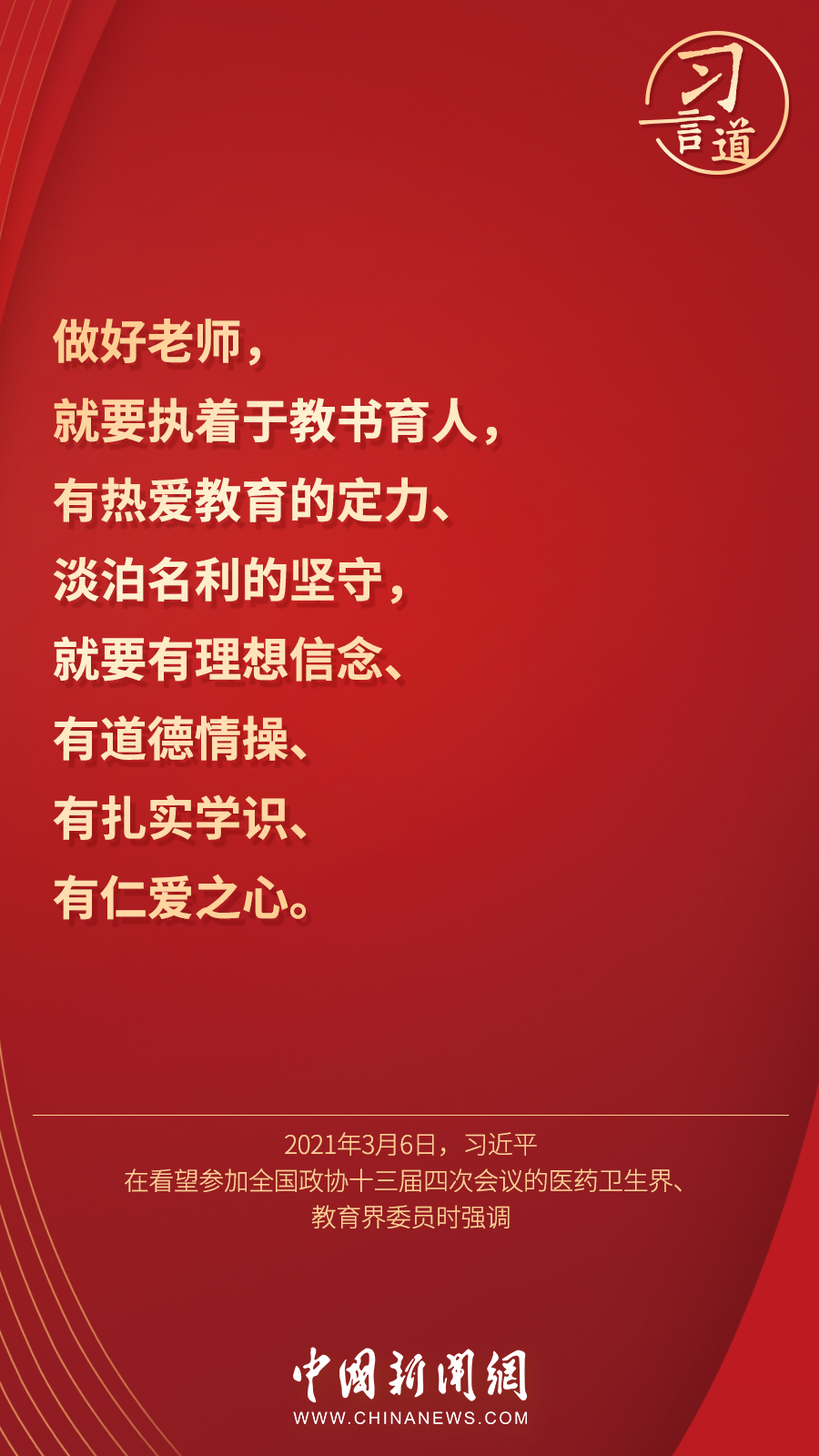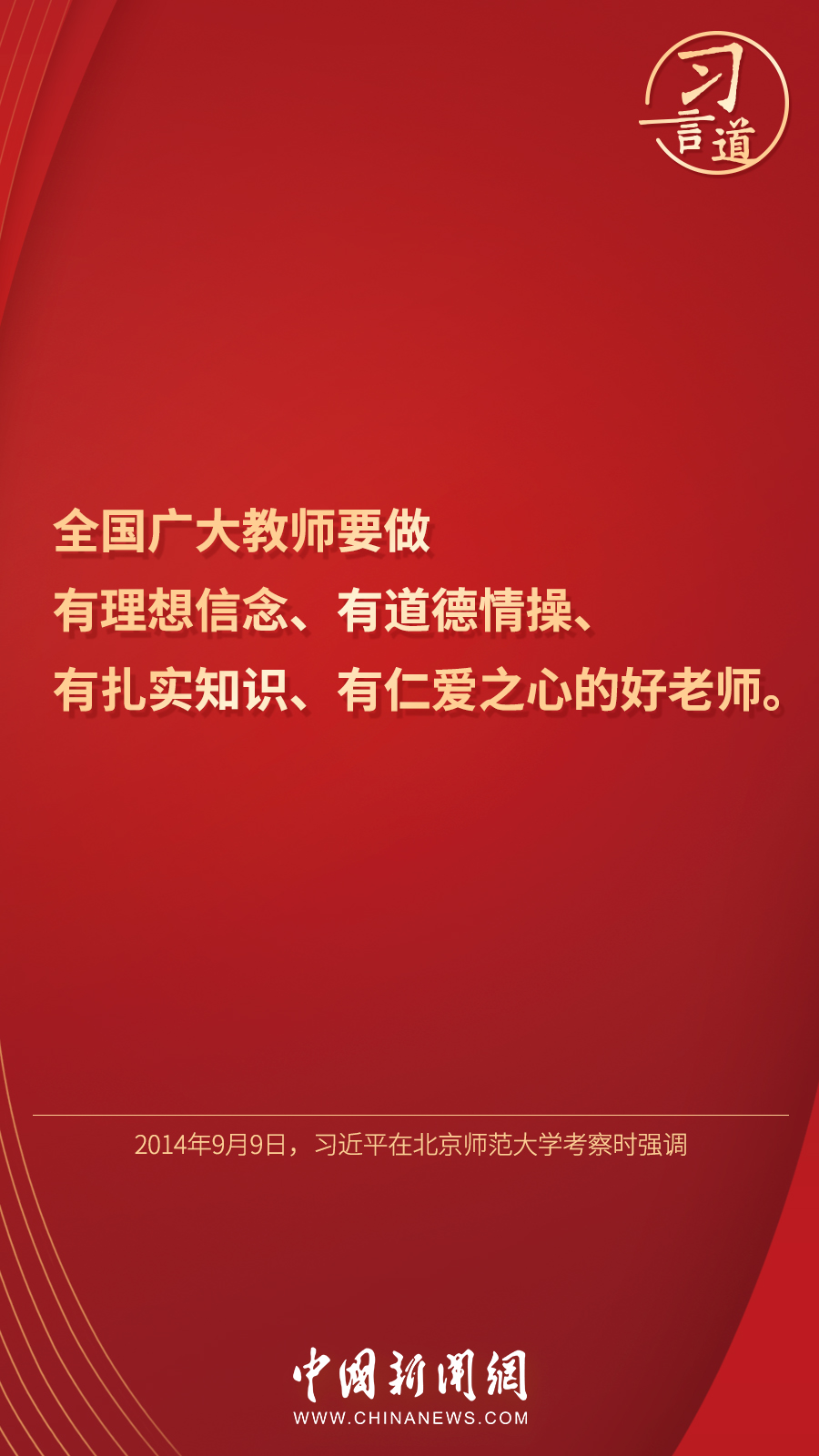 9月10日是教师节,习近平总书记始终高度重视教师队伍建设,多次论述“好老师”的深刻内涵和重要意义。