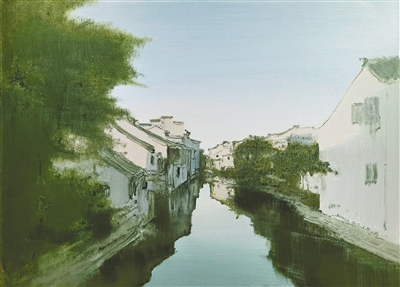陆庆龙油画《平江水巷》。