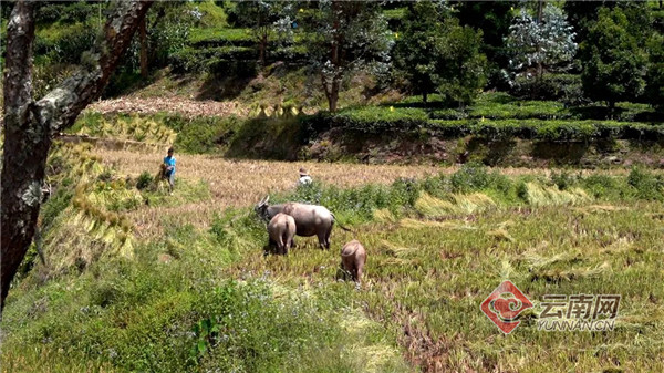 割谷、打谷、抓鱼,田里不时传来阵阵笑声。在当地,村民们利用稻和鱼共生的关系,不向稻田里施化肥,这样不但产出了优质有机红稻米,连养出来的鱼也是肉质细嫩、味道鲜美。“稻+鱼”生态养殖,使哈尼山乡一田多收,带来了可观的经济效益,村民种植和养殖的积极性也随之高涨。