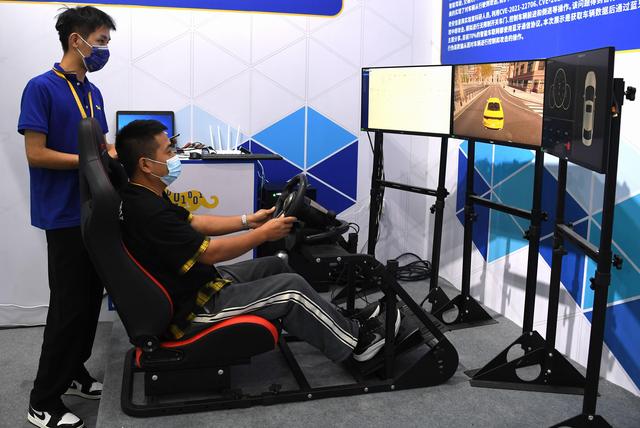 9月4日,一家参展企业代表在2022年国家网络安全宣传周网络安全博览会上演示使用车载网络安全科技产品。新华社记者 刘军喜 摄
