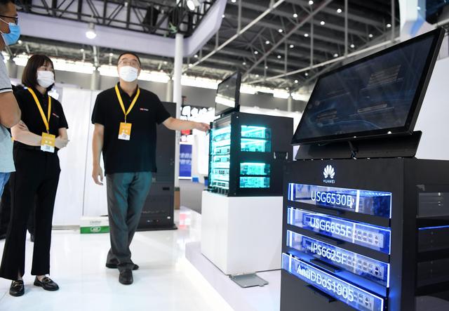 9月4日,一家参展企业代表在2022年国家网络安全宣传周网络安全博览会上介绍防火墙产品。新华社记者 刘军喜 摄