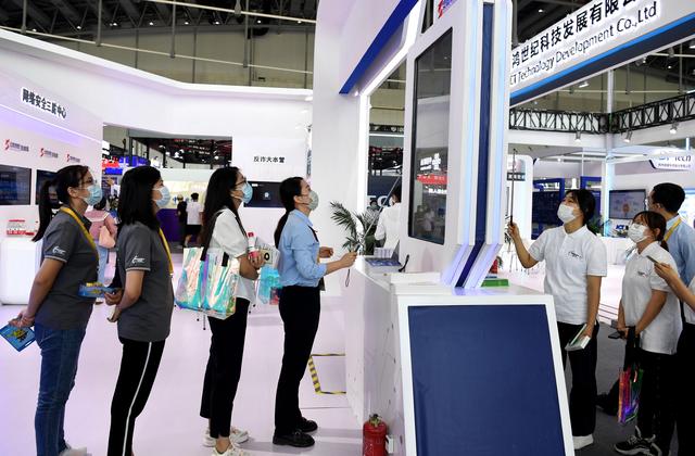 9月5日,参展人员在2022年国家网络安全宣传周网络安全博览会上进行“三防”科普互动。新华社记者 刘军喜 摄