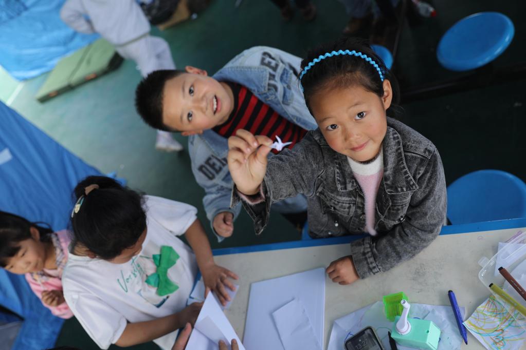 9日,孩子们正在学习做手工。新华社记者 刘琼 摄
