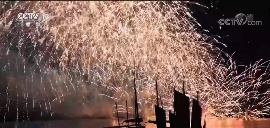 现场燃放的烟火更增添了节日的喜庆气氛,流光溢彩的烟花在夜空中绽放,映衬出一片古城月下人团圆的美好景象。