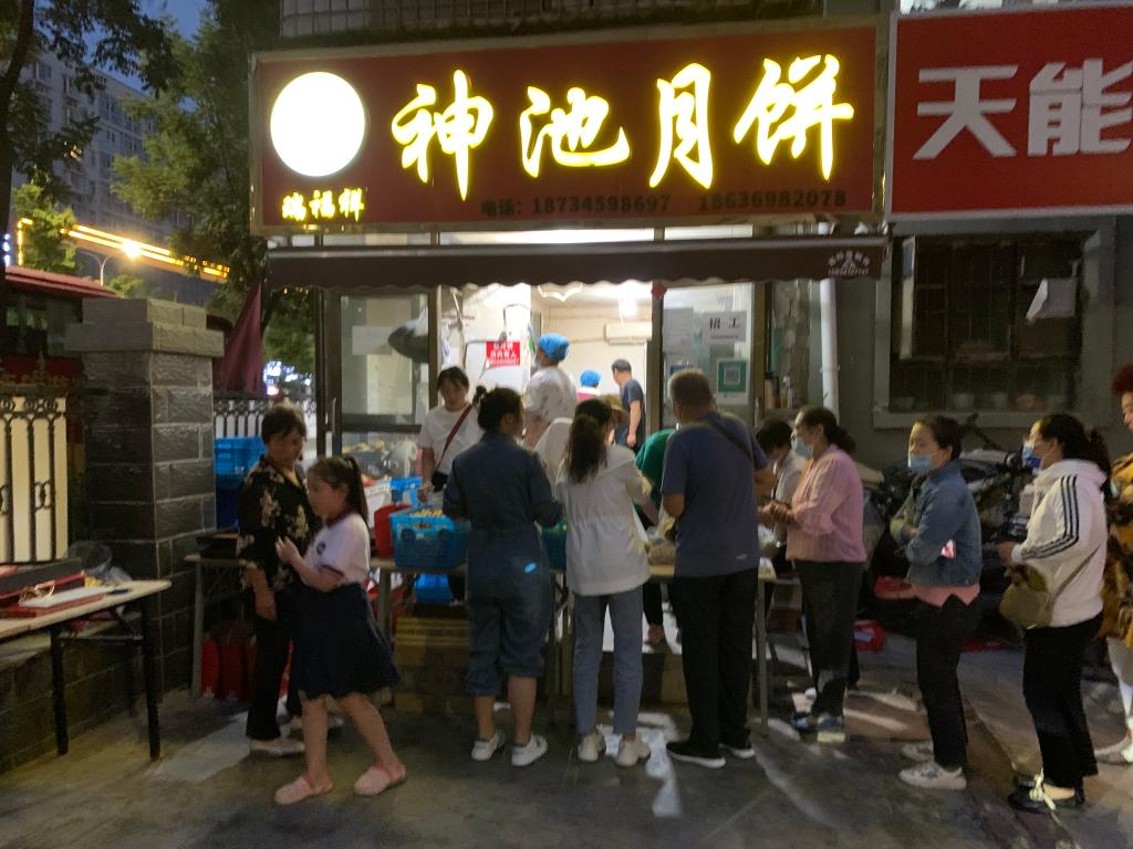 9日晚上,前来排队的顾客购买神池月饼。新华社记者 魏飚 摄