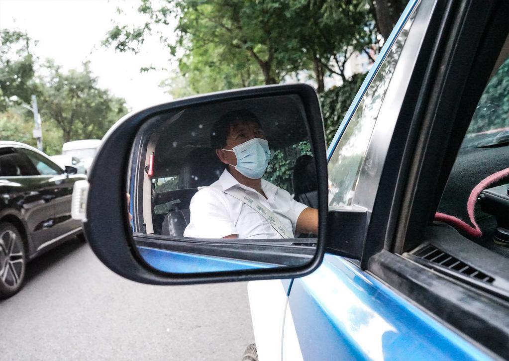 临近中午,街上的行人明显减少了,刘喜云把车停在路边一个面馆旁,不到10分钟就吃完一碗面。“我们吃饭没点儿,也没固定地方,客人少了再吃,走到哪里吃到哪里。”他说,“今天想去稍微偏远点的街道转转,那里的乘客更需要我们。”