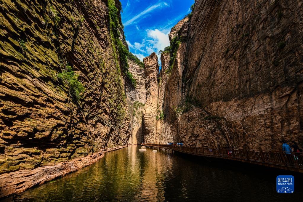游客在山西省长治市黎城县黄崖洞景区内游览(2022年7月6日摄)。新华社发