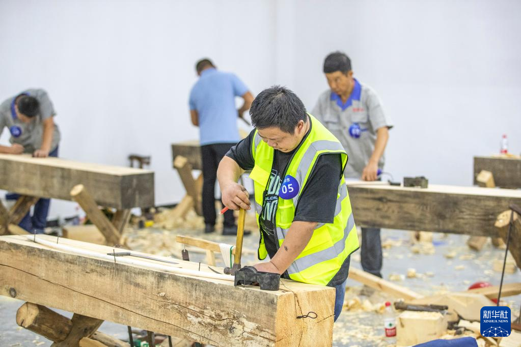 9月9日,参赛人员在进行木作文物修复技能比赛。新华社记者 黄伟 摄