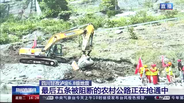四川甘孜泸定6.8级地震丨最后五条被阻断的农村公路正在抢通中