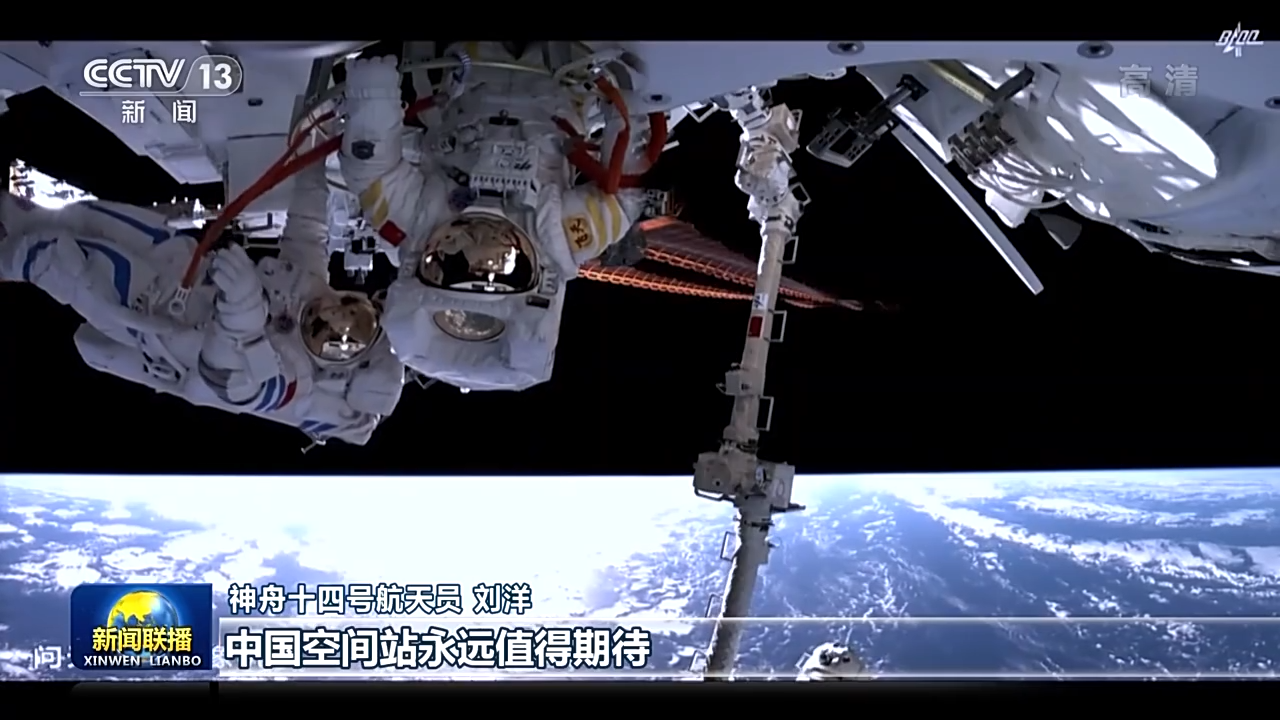 这是我国航天员刚刚完成的空间站第五次出舱。目前,由天和核心舱、问天实验舱、神舟十四号、天舟四号组成的空间站组合体,正翱翔在距离地球400公里的太空。不久之后,梦天实验舱也将到来,中国空间站即将全面建成。