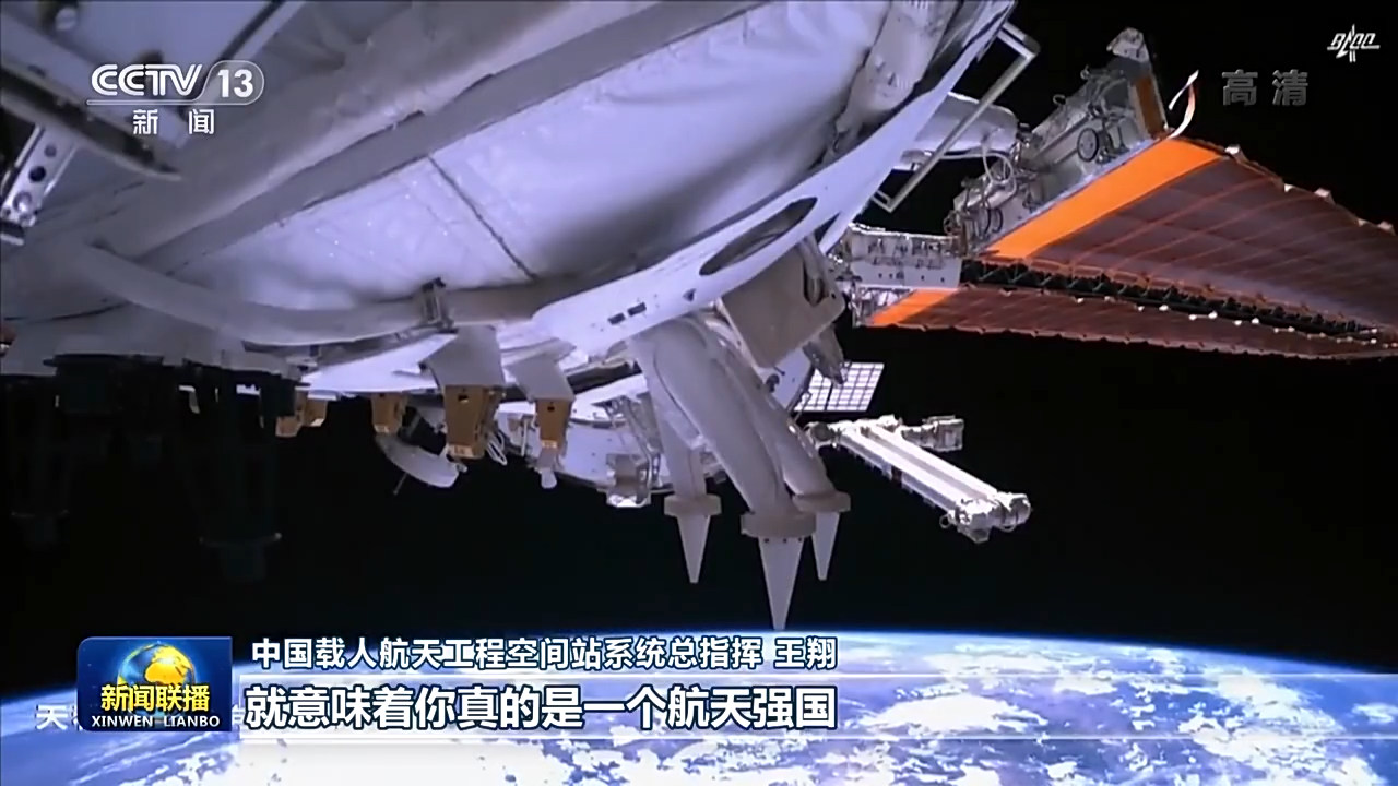 中国载人航天工程空间站系统总指挥 王翔:空间站不是自己一个站在飞行,这个站的背后就是我们有这样一个完备的强大的航天体系的保障,所以空间站能在天上飞,而且我们作为一个国家能独立自主干出空间站在天上飞,就意味着你真的是一个航天强国。