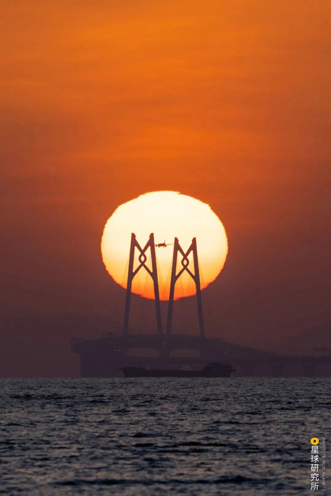 ▲清洲航道桥与货船、飞机的合影。摄影师@张泽坤