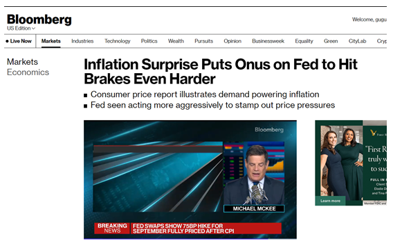 彭博社报道称,通胀超预期或将令美联储更激进地收紧货币政策。