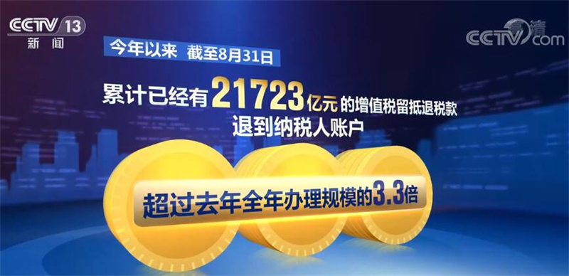 国家税务总局数据显示,今年截至8月31日,累计超过两万亿元(21723亿元)的增值税留抵退税款退到纳税人账户,超过去年全年办理规模的3.3倍。其中,超六成企业把留抵退税资金用在了采购原材料和加大投资研发上。