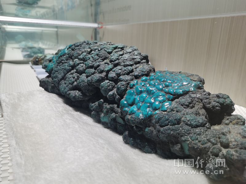 竹山县绿松石博物馆内珍藏的一块绿松石原石(中国经济网记者 王岩/摄)