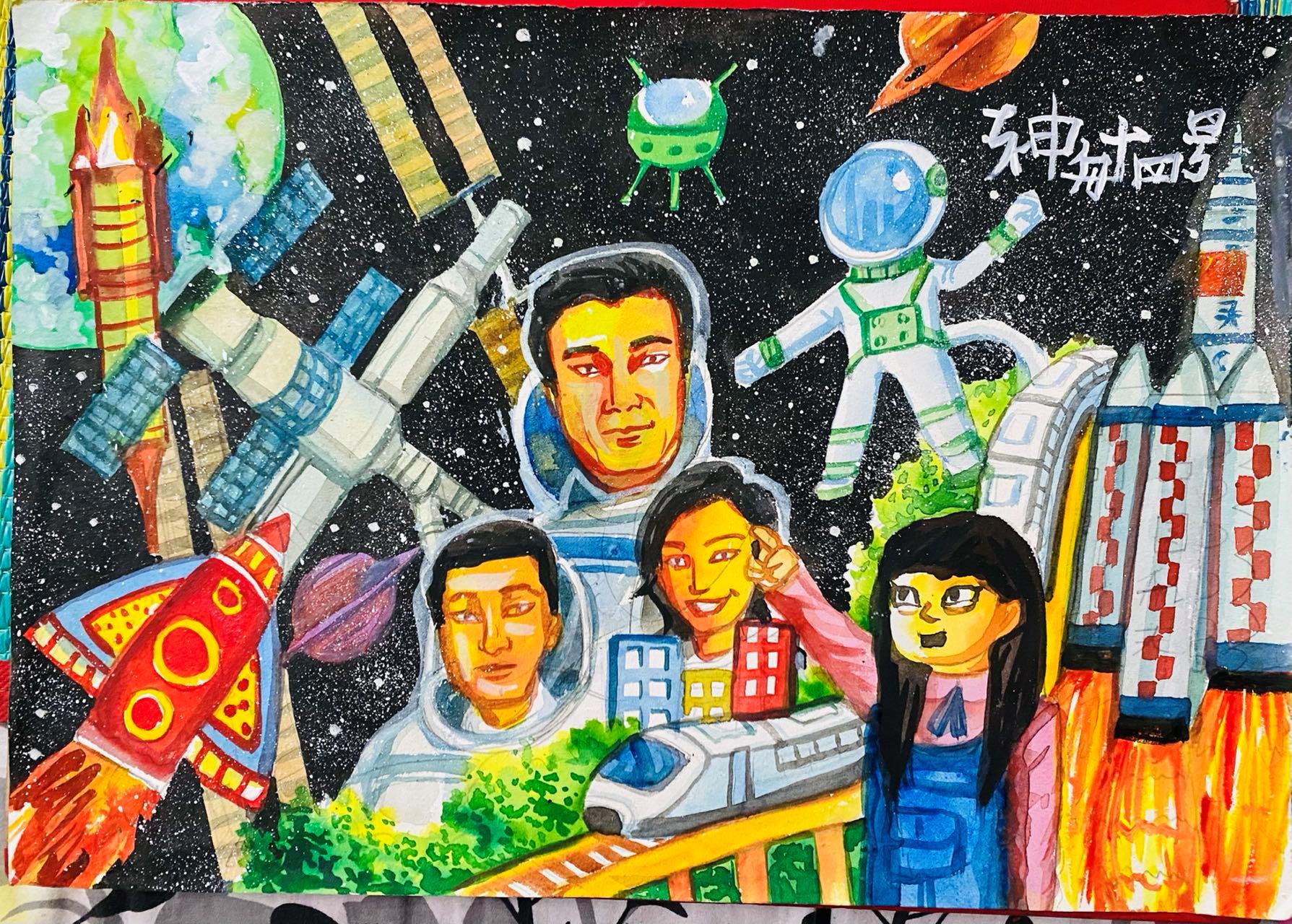由中央广播电视总台亚非中心和中国科技馆联合举办的全球青少年“共绘航天梦”绘画征集及“太空之问”互动活动自今年6月启动以来,征集到来自二十多个国家和地区青少年的600余幅绘画作品和上千条有关航天的问题。这些画作和提问以“航天梦”为主题,展现了中外青少年对太空生活、星际漫游、外星文明、和平利用太空、建设理想家园的丰富想象。