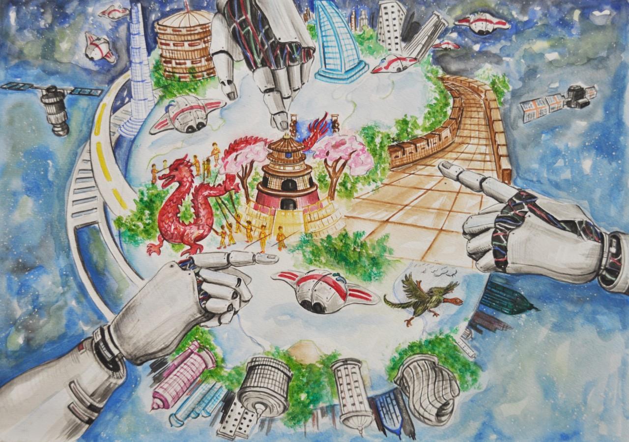 △《从北京通往太空的快速路》 绘画者:土耳其 伊莲穆·古尔特佩 17岁