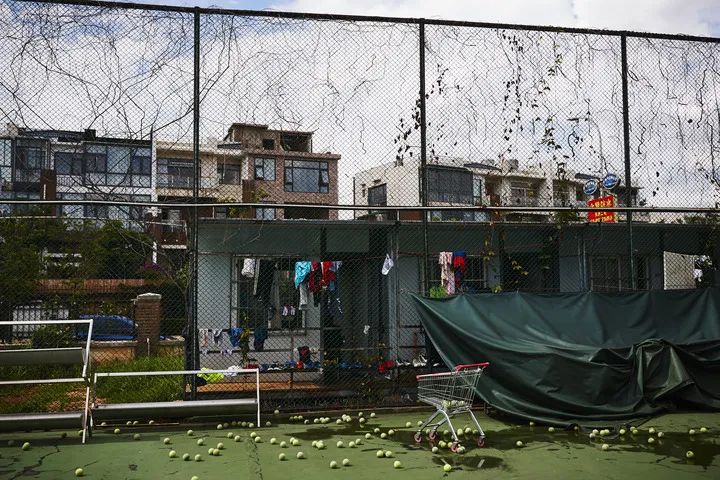 到达现场,王育喜被眼前的场景震惊了:出现裂缝的球场、打到起毛的网球、断了线的球拍……一堵80多米长的墙前,10多个男孩女孩一线排开,正对着墙练网球。一墙之隔,是几个集装箱改造成的宿舍,那是教练和孩子们住的地方。