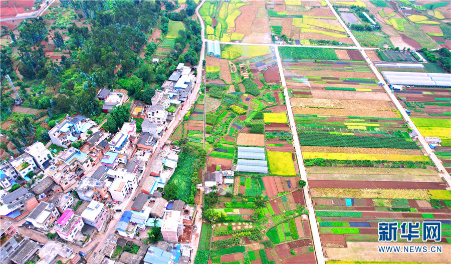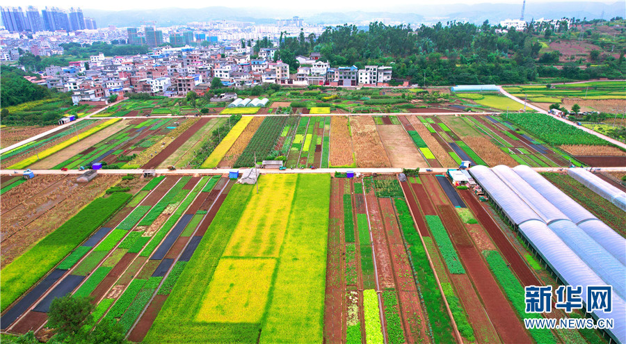 云南省弥勒市弥阳街道办事处,秋天的田园美如画卷(9月16日摄)。新华网发(普佳勇 摄)
