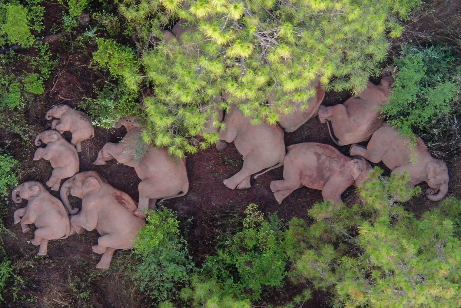 在此次亚洲象的奇妙之旅中,这张大象在云南省玉溪市易门县十街乡休息的睡姿照温暖了全世界。