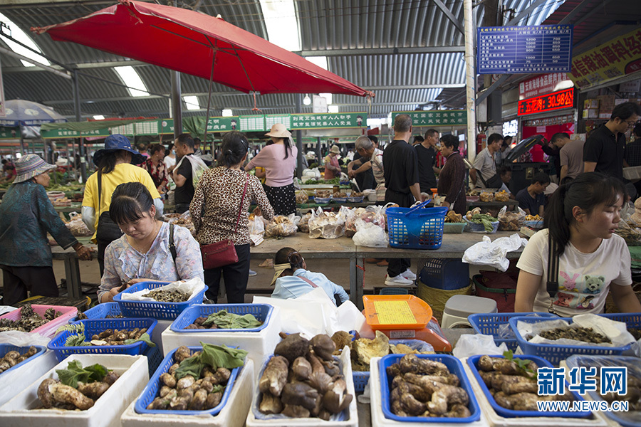 农贸市场内的野生菌(摄于8月2日)。新华网 范芳钰/摄