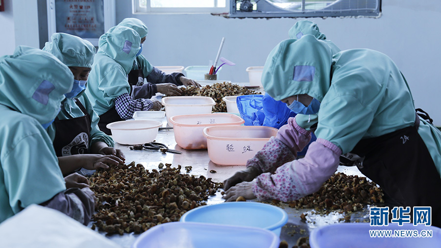 工作人员分选野生菌(摄于8月1日)。新华网 范芳钰/摄
