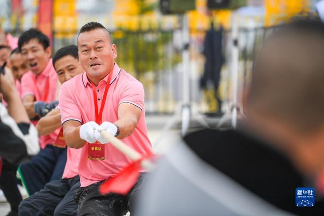 9月19日,人们在2022年内蒙古“中国农民丰收节”主会场庆丰收趣味运动会上拔河。新华社记者彭源/摄
