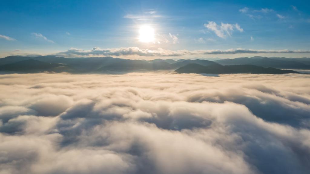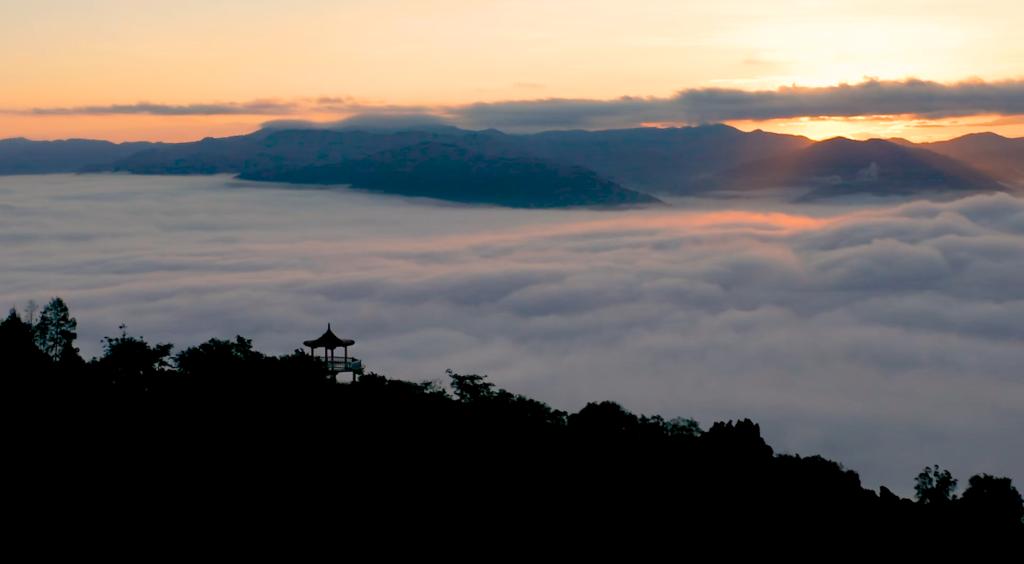 站在普洱山之巅,放眼望去是漫无边际的云,如临于大海之滨波起峰涌。远处,莽莽群山宛若披上了一层缥缈的面纱。