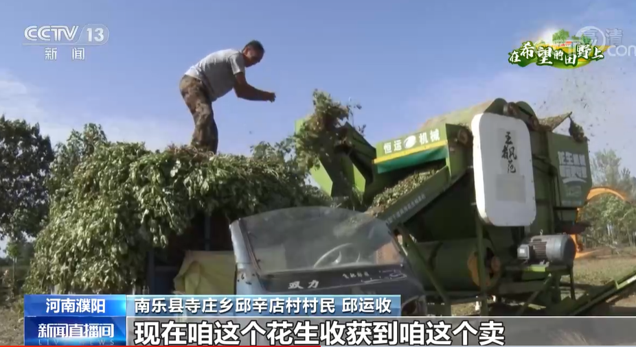 在河南濮阳市南乐县,花生迎来收获期,村民们趁着晴好天气进行机收作业,田间地头一派繁忙景象。
