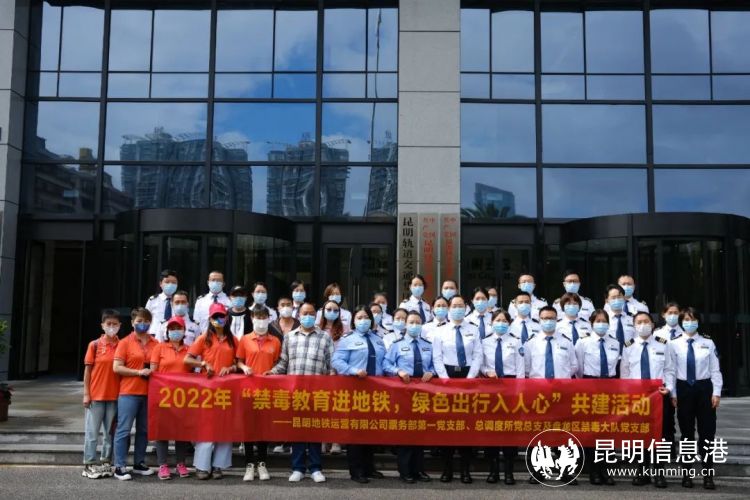 昆明信息港讯 记者合宇聪 9月16日上午,昆明市公安局盘龙分局禁毒大队党支部带领由禁毒康复者组成的“馨星禁毒宣传小分队”联合昆明地铁票务部第一党支部与总调度所党总支开展禁毒宣传活动。