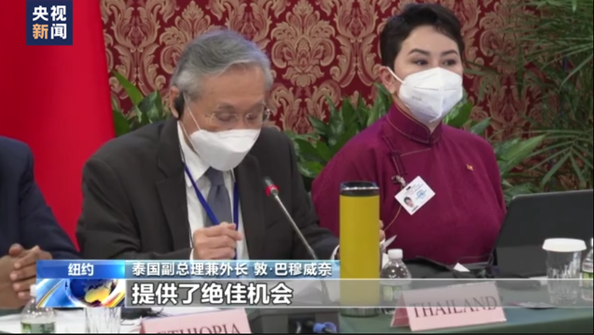 泰国副总理兼外长 敦·巴穆威奈:因为新冠疫情以及地区冲突,当前世界面临严峻的危机,中方提出的全球发展倡议,旨在建立发展的全球共同体,也为加速实现联合国可持续发展议程提供了绝佳机会。