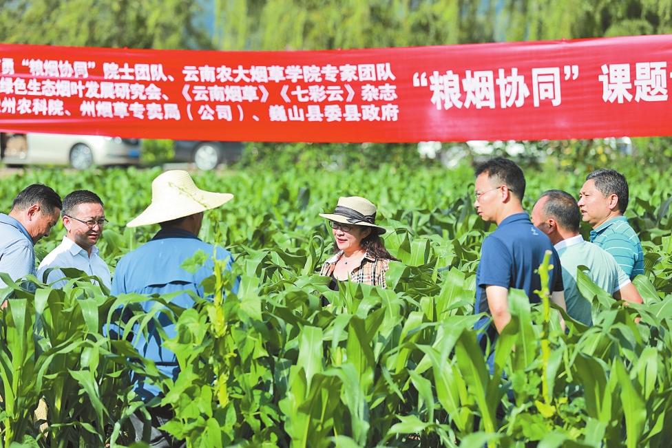 为保障烟叶和粮食科学有效生产,云南省烟草专卖局(公司)寻求与云南农业大学朱有勇院士团队合作,力图在“烟粮协同”的推进过程中以科学为引领、用技术做保障。为解决烟农担忧,各地政府主动作为,提前联系了附近的食品加工和销售企业、养殖企业等,为示范区内套种的玉米找到了销路,让烟农吃下定心丸。