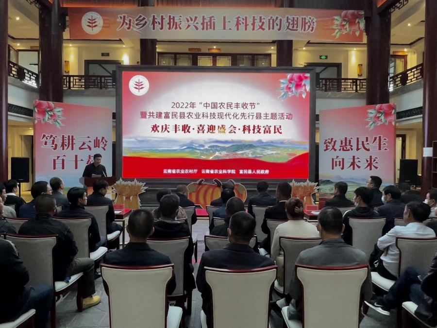 23日,由云南省农业农村厅、云南省农业科学院(以下简称“云南省农科院”)、富民县人民政府共同主办的2022年“中国农民丰收节”暨共建富民县农业科技现代化先行县主题活动在昆明市富民县举行。活动展示了富民县农业科技现代化先行县共建成果,与农民及企业家共享丰收喜悦。