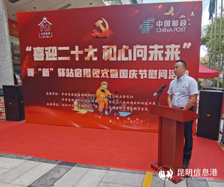 官渡区总工会常务副主席李维梅表示:邮政官渡区分公司吴井邮政支局暖“新”驿站的启用将更好地服务于快递小哥,为他们量身打造“歇脚地”“加油站”,真正建成暖心工程、民生工程,让更多的户外劳动者真正体会到“家”的温馨和社会的关爱。