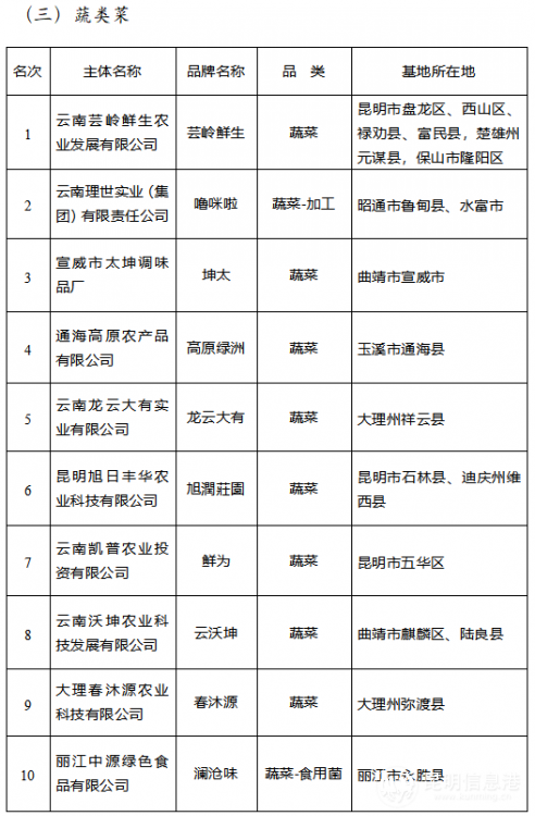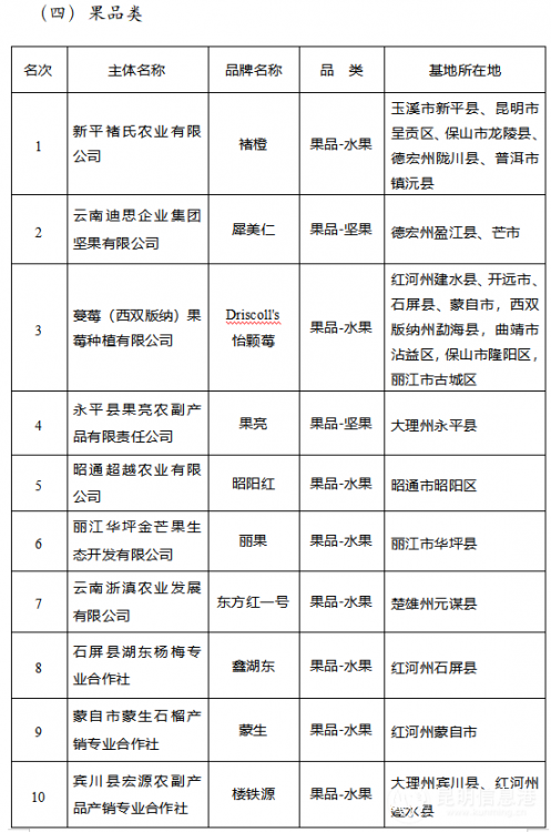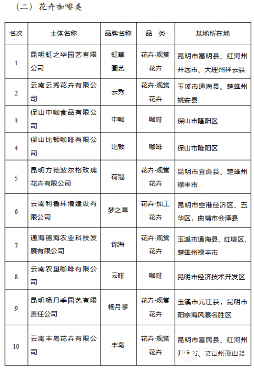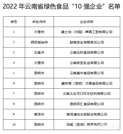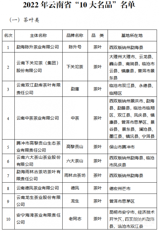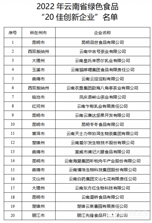 2022年云南省“10大名品”和绿色食品“10强企业”“20佳创新企业”名单如下: