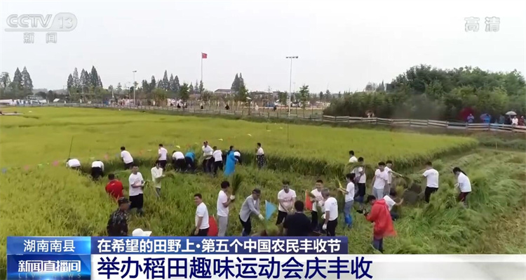 地处洞庭湖区的湖南益阳南县是水稻的重要产区,近年来,当地发展起了稻虾种养产业。眼下,南县的大片晚稻成熟,当地举办了趣味运动会庆祝丰收。