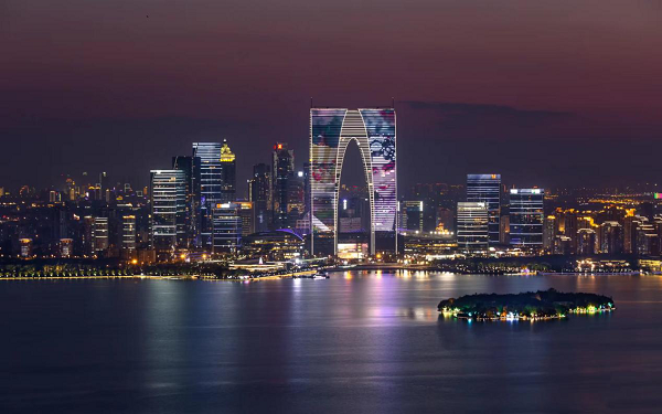 古色古香的姑苏区与苏州工业园区遥相辉映(央广网发 李志翔 摄)