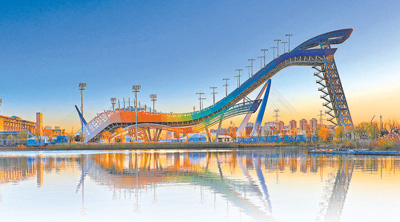 当中国小将苏翊鸣在北京首钢滑雪大跳台上勇夺冬奥金牌时,这座设计灵感来自敦煌飞天飘带形象的五彩大跳台,也成为世界看向“双奥之城”的一扇窗。