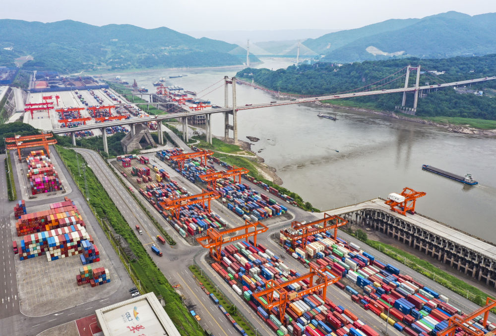 这是重庆果园港一带景象(2022年5月24日摄,无人机照片)。新华社记者王全超摄