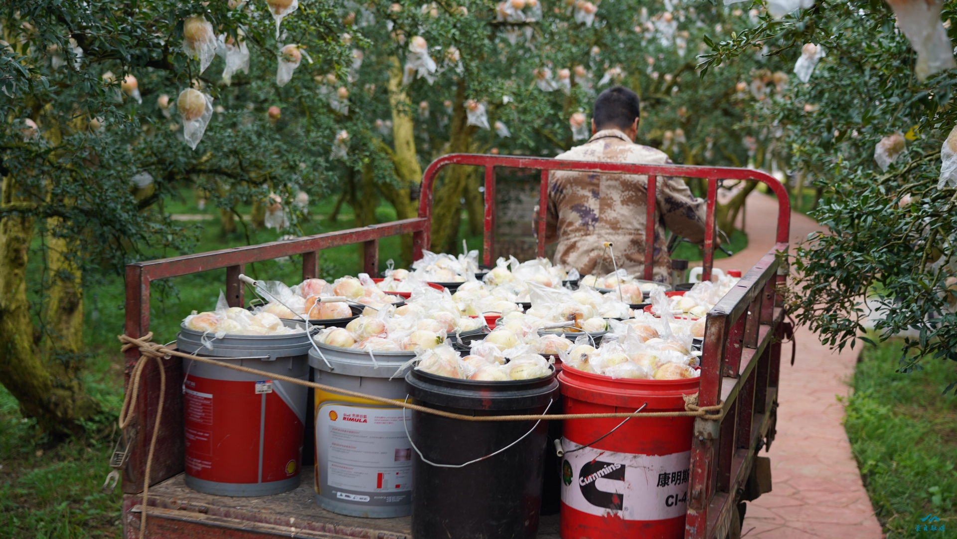 同时,蒙自市新安所街道的百年古树石榴园迎来丰收,石榴挂满枝头,石榴种植户们在树上树下配合采摘,一桶桶皮薄个大的石榴采摘装车。现在,新安所街道形成了以合作社带头,规模化、品牌化生产销售的石榴产业,引进了较为先进的自动化选果设备,提高了选果效率。