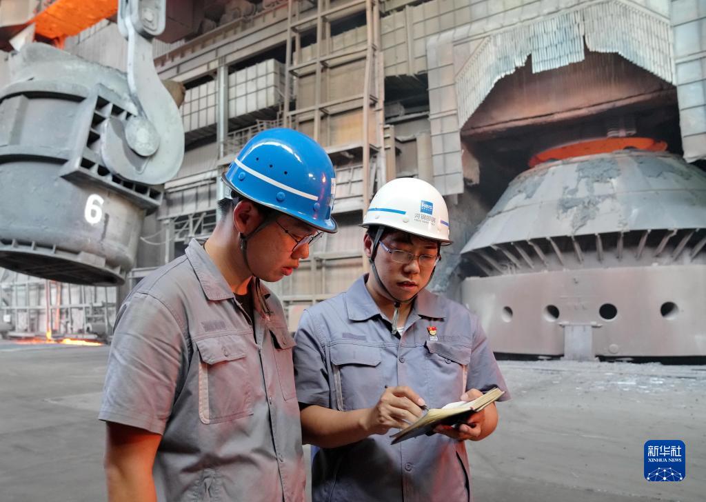 新华社石家庄9月27日电 记者齐雷杰 河钢集团邯钢公司邯宝炼钢厂转炉车间里,天车吊着巨型钢包隆隆划过,转炉中炉火通红,钢水翻涌。唐笑宇手持对讲机,冒着热浪叮嘱同事注意控制好转炉中间氧、出钢温度等指标。