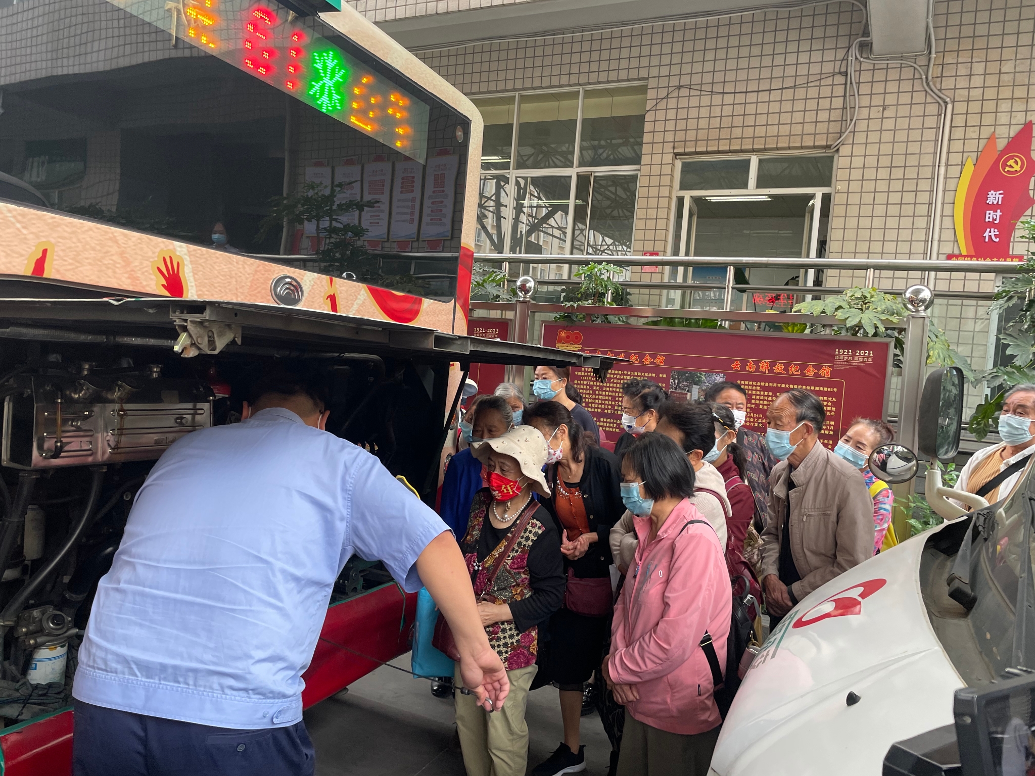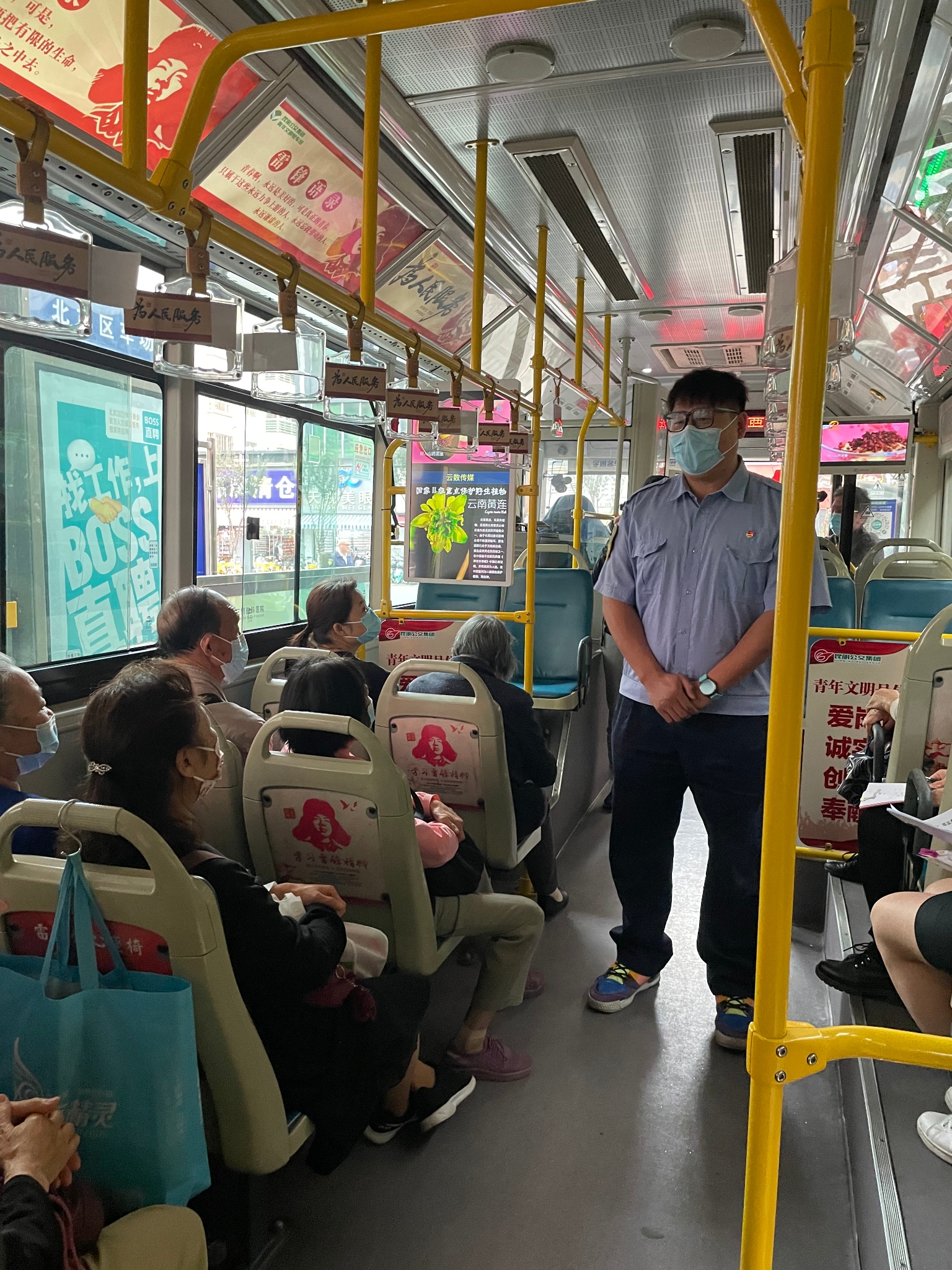 活动中,工作人员带领老年乘客了解驾驶员的一系列日常工作流程,讲解雷锋主题车厢及公司各类多元出行举措,并带领大家实时观摩体验公交车的驾驶盲区,了解公交车常见的摔伤情况及原因,增强老年人日常出行的安全防范意识。