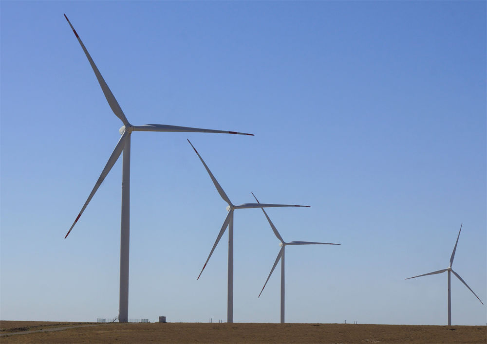 这是2022年9月13日拍摄的哈萨克斯坦札纳塔斯风电场风机。新华社发(德米特里·瓦西连科摄)