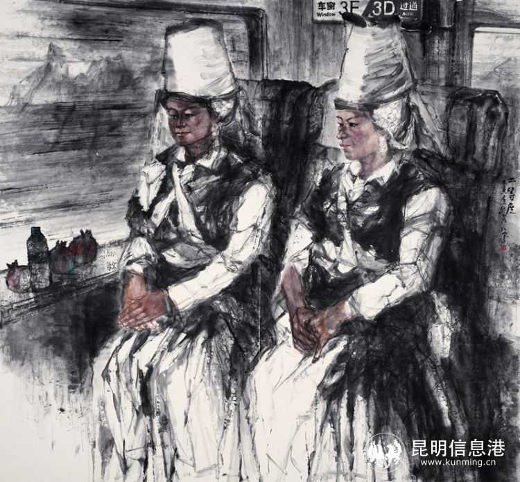 罗江 《二等座》 194×178cm 中国画