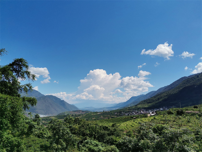 九月的潞江坝,放眼万山,田野披绿,漫山的咖啡树连成片,枝条已经开始挂上绿色的果实,长势喜人、丰收在望。